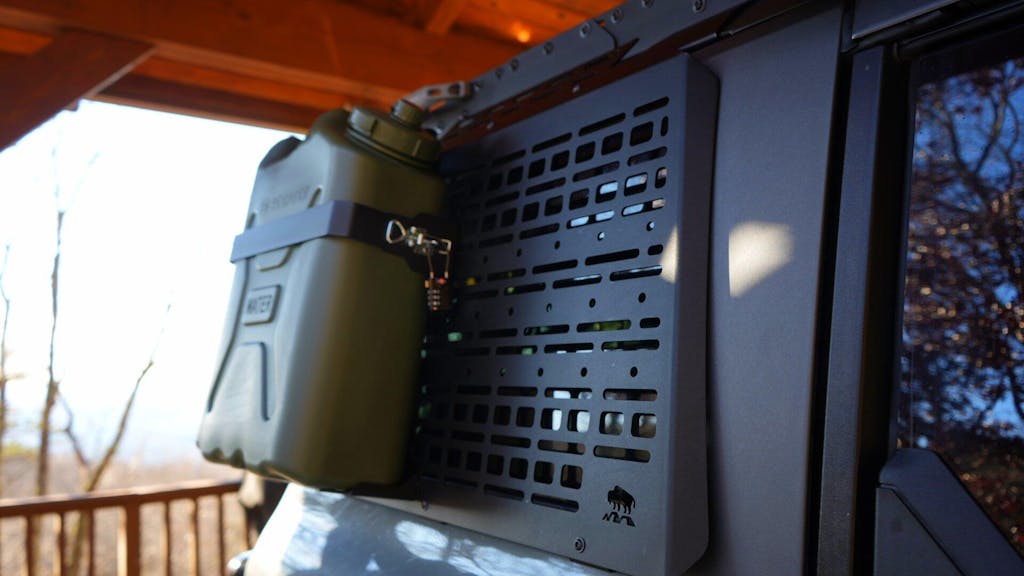Every off-road ruler knows well how important is to find the place for store the essentials. Our external panels allow you to join every moment of your journey. Thanks to the impressive integration with MOLLE System, it's perfect place to store water canisters, shovels and more.