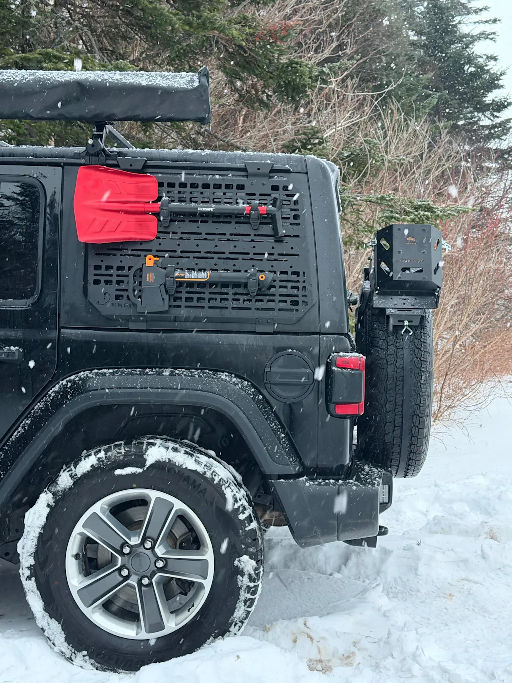 Jeep Wrangler MOLLE panels fit perfectly with roof racks and are ideal for installing the OX PRO Heater Box.