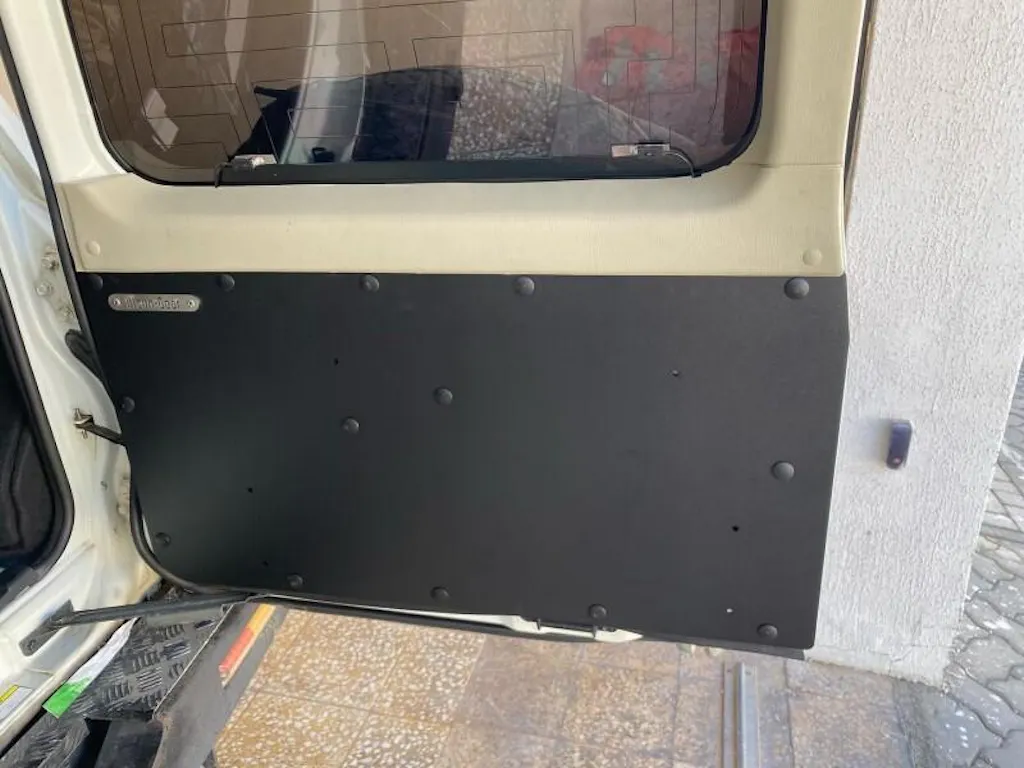 The left and right aluminum panels are designed to fit the shape of the rear doors perfectly. A black powder-coated finish adds a rugged and refined look that complements your 4x4 vehicle.