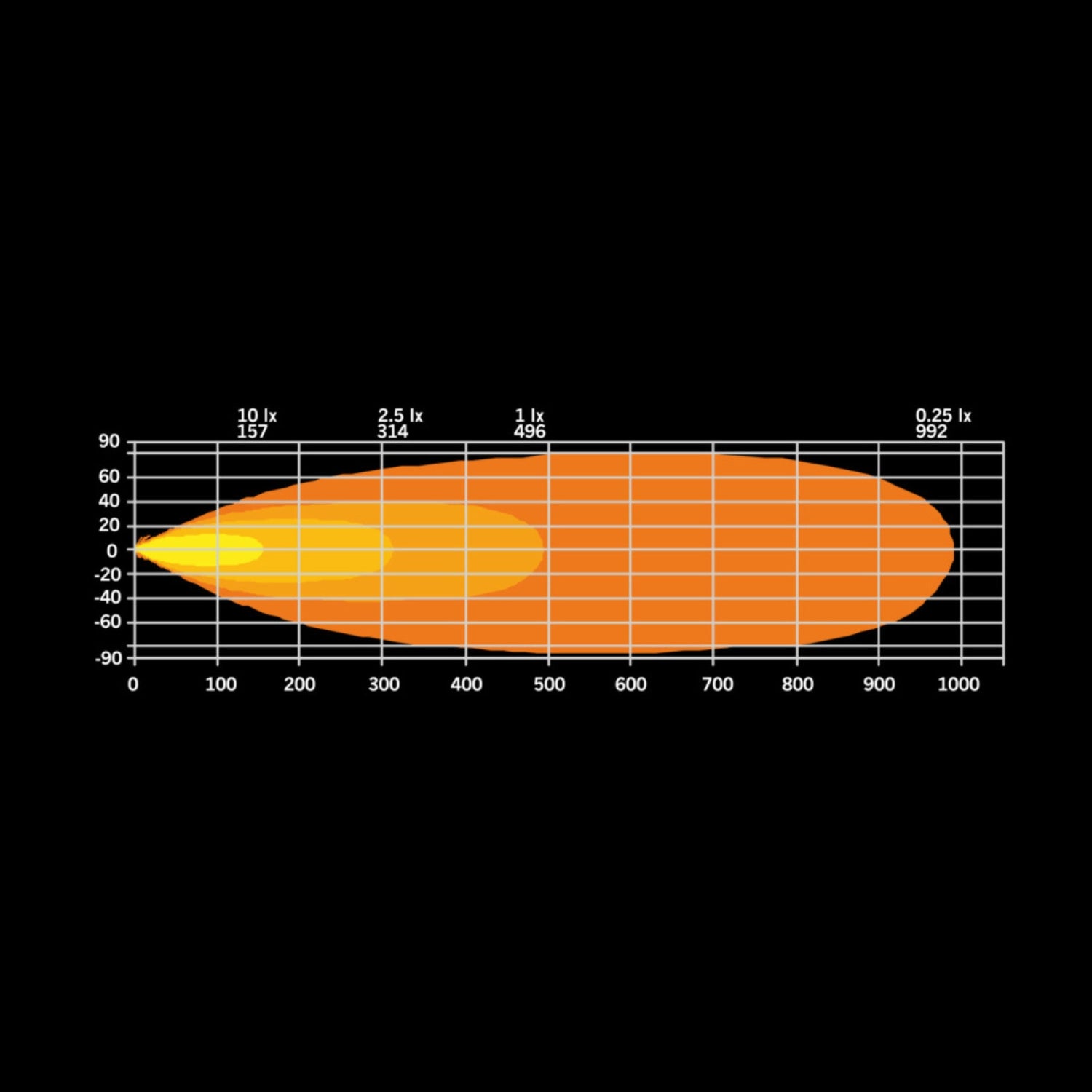 Despite its size, it's a single-row masterpiece. It delivers maximum performance like no other, providing a sharp and wide beam pattern of 10 670 actual lumens and 1 lux at 496 m (1627 ft). Ready to guide you forward with clarity and precision.