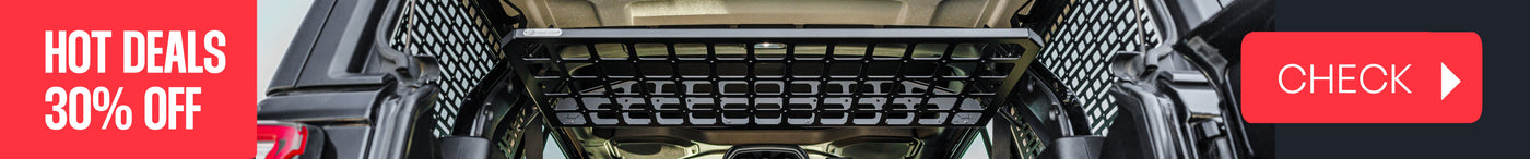 Bison Gear roof racks are fully compatible with a wide range of dedicated accessories, including MOLLE panels, gear boxes, LED light mounts, spare tire holders, and sport or adventure equipment mounts.