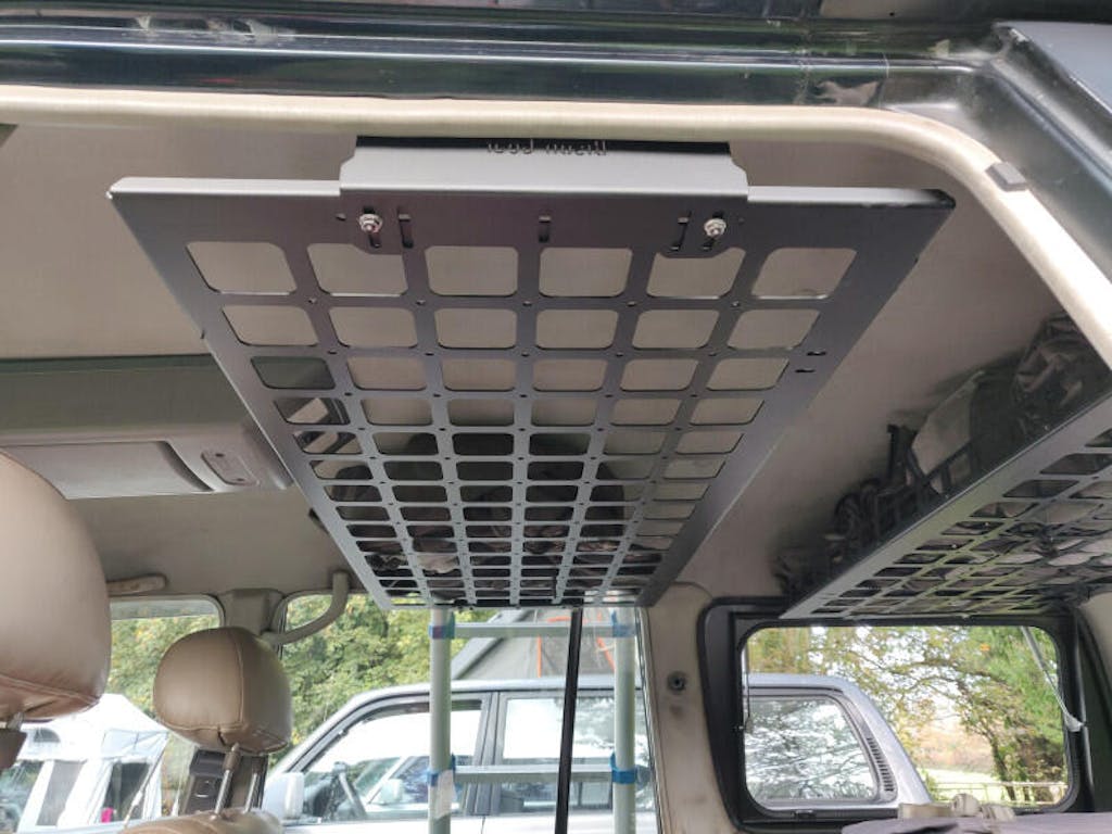 The Roof Shelf for Toyota Land Cruiser J80, Lexus LX450 & Nissan Patrol Y60 is a game-changing addition to your 4x4 vehicle, designed to improve interior storage and comfort during off-road and overlanding adventures. Whether you're planning a weekend escape or a long adventure, this ceiling-mounted shelf adds smart space to store your essential accessories within easy reach.