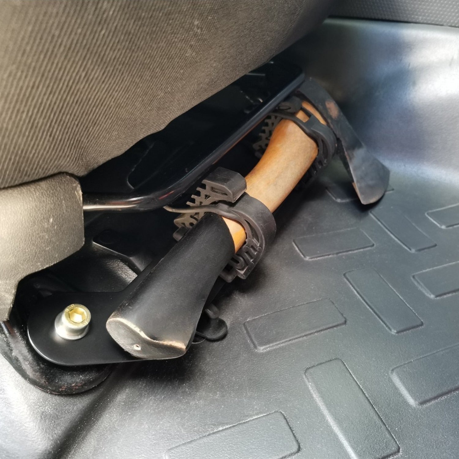 Z Uchwytami na Akcesoria Pod Fotel możesz bezpiecznie zamocować niezbędne elementy wyposażenia, takie jak lina holownicza, gaśnica czy siekiera - wszystko w zasięgu ręki, dokładnie tam, gdzie będzie potrzebne podczas wyprawy overlandingowej.
